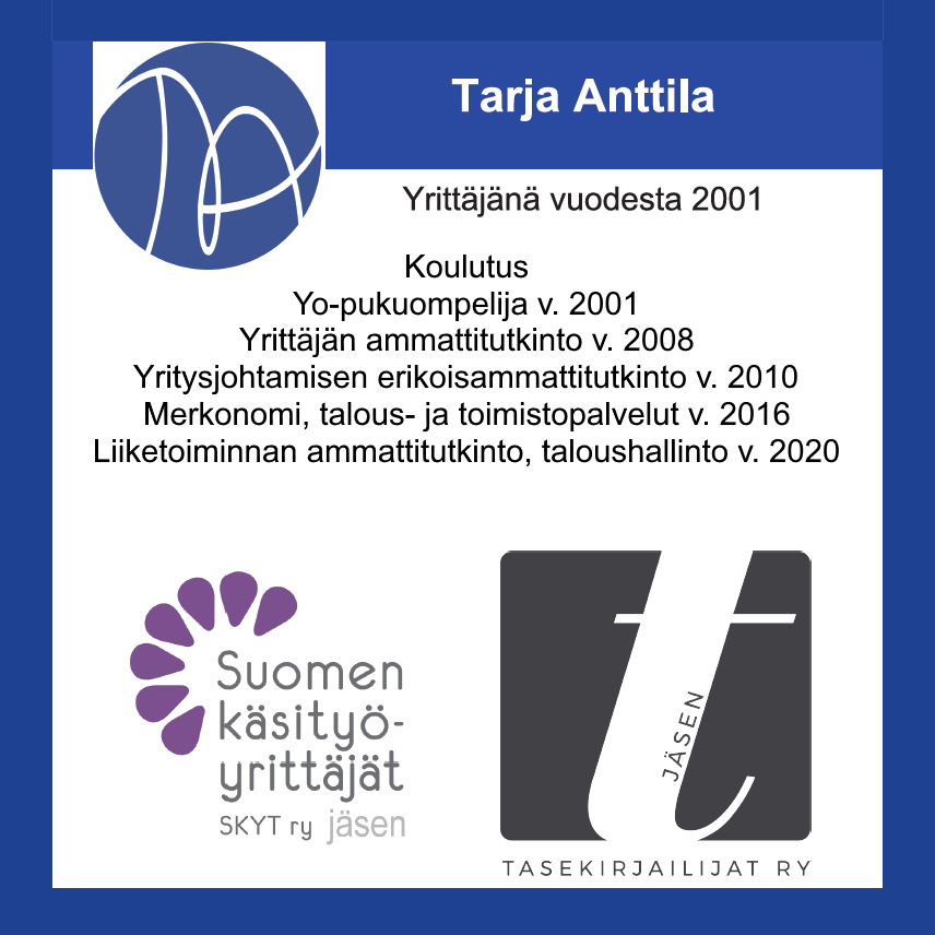 Tarjan ompelukauppa on Suomen käsityöyrittäjät SKYT ry:n jäsen ja Käsityökortteli-yritys. Ompelukauppaa voit seurata sosiaalisessa mediassa Facebookissa , Instagramissa ja Pinterestissä sekä Blogissa . Yritystä koskevissa julkaisuissa voit käyttää tägiä #tarjanompelukauppa